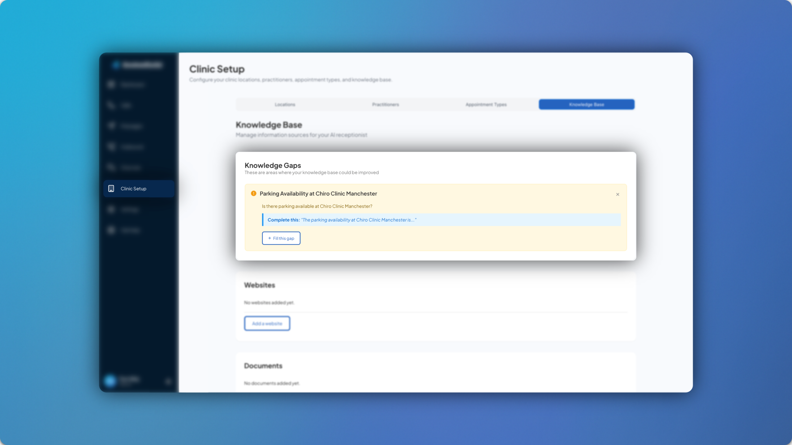 When a patient asks something which cannot be answered, due to the information not existing within the Knowledge Base, this will be flagged up in the Knowledge Base and prompt the account admin to provide the missing information. Once filled out it will then be added as a text note.